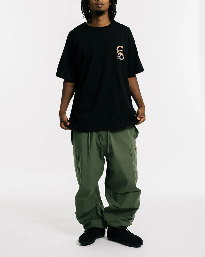 這款圖案印花T卹採用7.4盎司(約217克)順滑精梳棉製成。左胸和前片後側印有全新圖案。輪廓適中。除了純色款外,還推出隱藏式EVISEN字樣的原創迷彩圖案。
