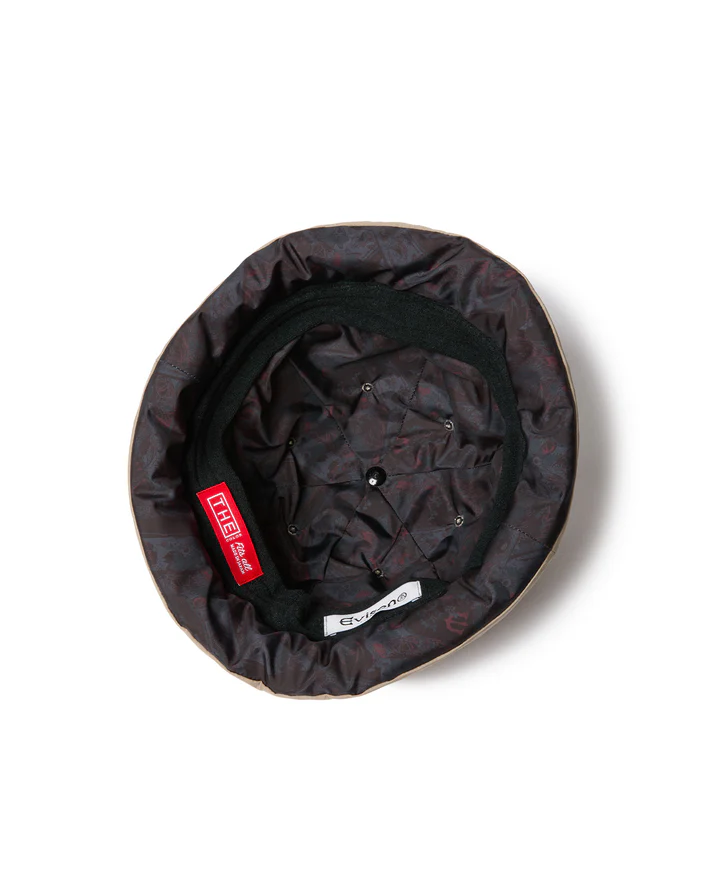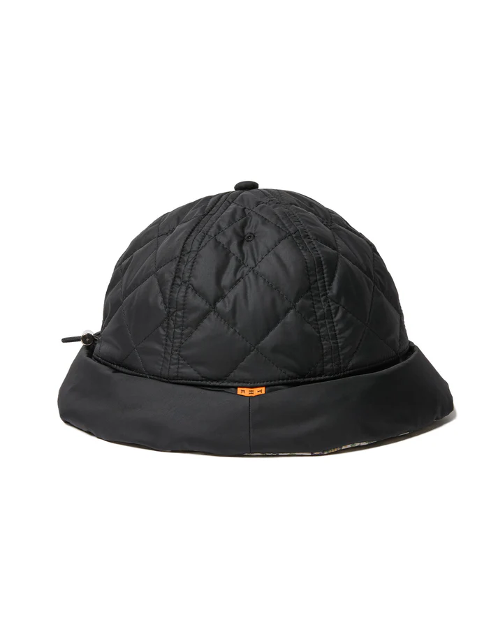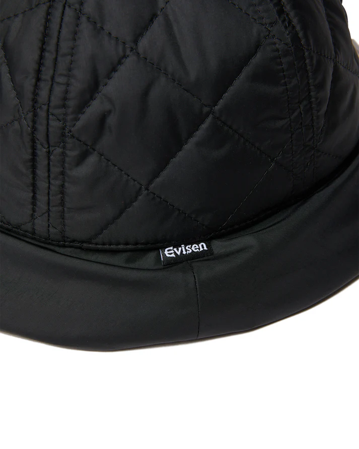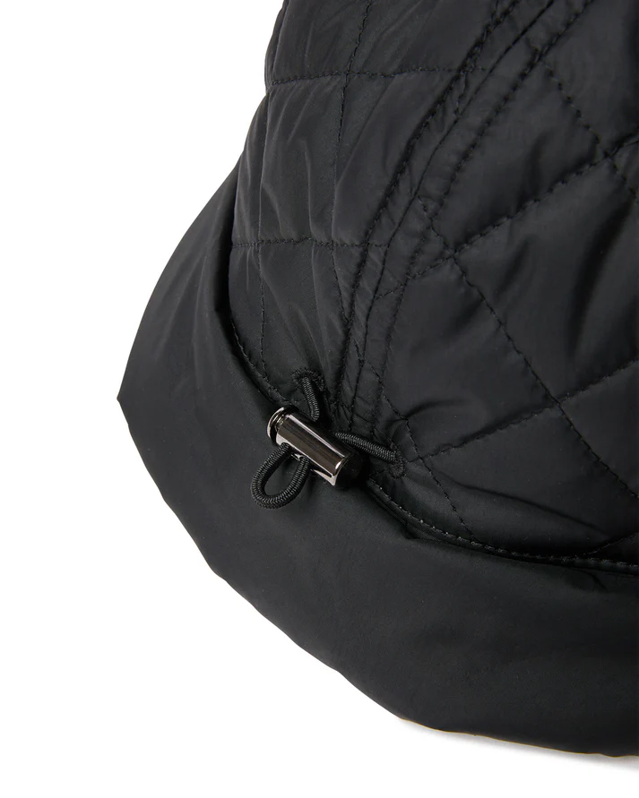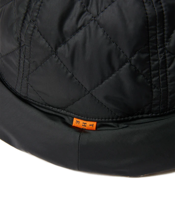 這款絎縫帽採用防水尼龍塔夫綢布料製成。